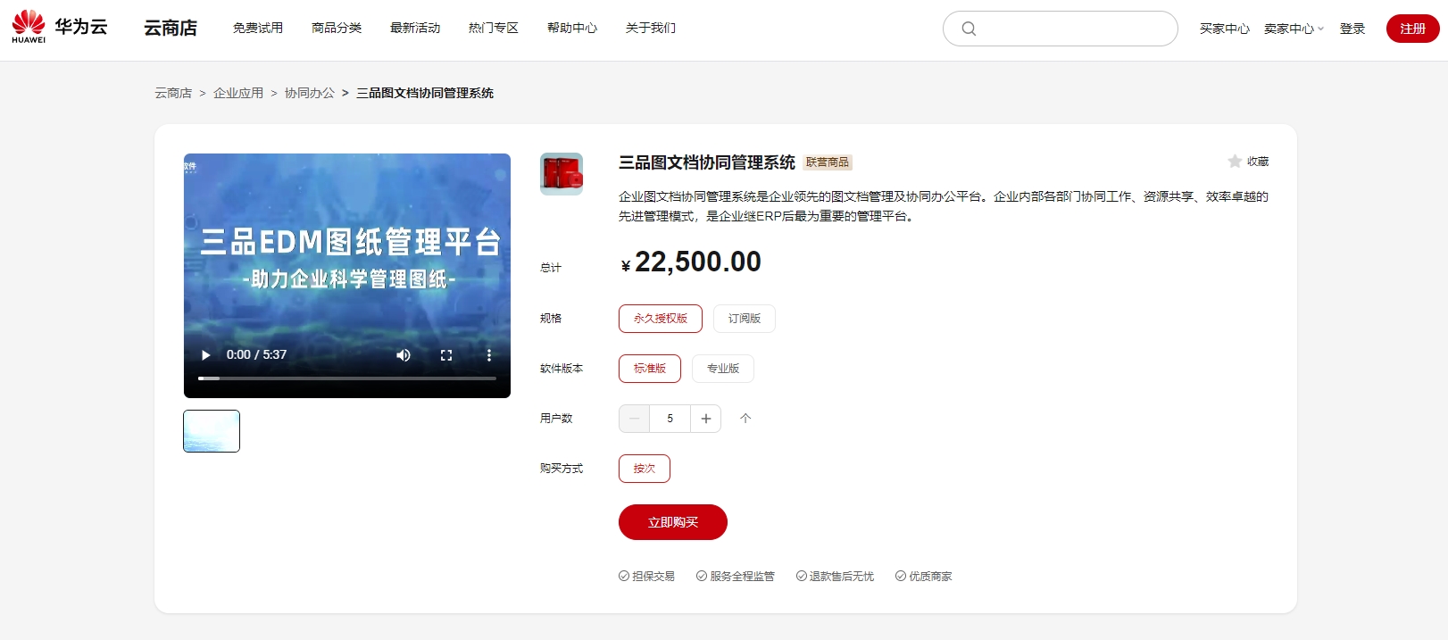喜報!三品圖文檔協同管理系統正式入駐華為云商店聯營商品