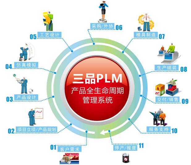 PLM是伴隨著PDM的不斷實施而發展出來的概念,即Production Lifecycle Management,關注點在于產品的生命周期。產品生命周期是一個非常寬廣的概念,也為PLM的行業帶來了更多的業務機會。