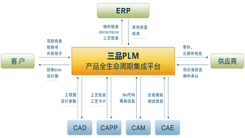 通過和CAD集成,理想的將CAD的設計成果轉化成為PDM和ERP中能讀解的產品結構;再與ERP集成,PDM將用戶在功能和參數上的需求以物料清單的形式正確的傳遞給ERP,使ERP能夠進行實物(物料和原材料)的準備,并能夠協助ERP進行生產指導。