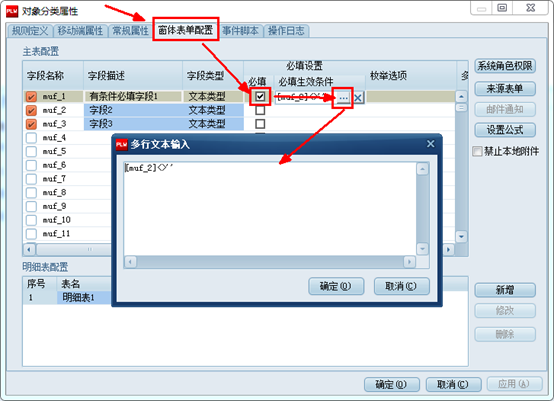 窗體表單明細表有條件必填字段,設置方法與主表有條件必填字段設置方法類似。
