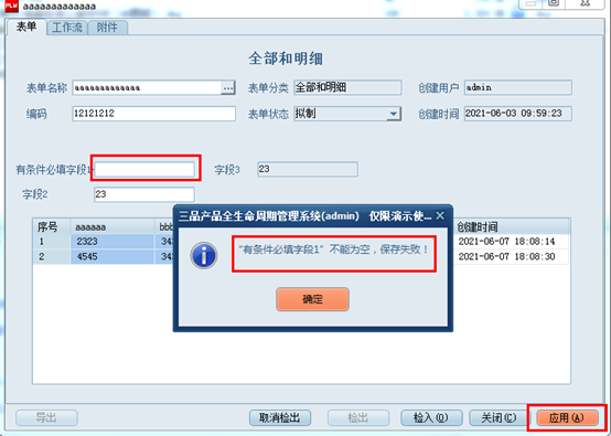 3、測試窗體表單必填字段生效條件。