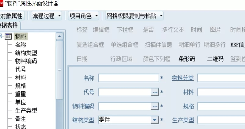 通過三品PLM的物料屬性設計器,將物料的基本屬性信息進行編輯,定義其他部門管理的屬性字段,確認哪些屬性要進行權限管控,對屬性字段進行標識。