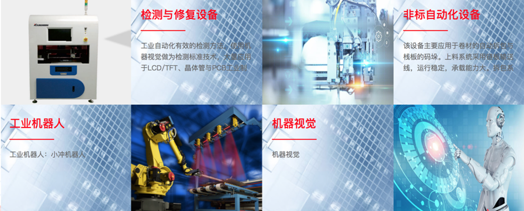 公司大力投入技術創(chuàng)新,康鴻智能業(yè)務涵蓋3C消費電子類行業(yè)、光電顯示及汽車新能源等高端制造。為客戶提供非標自動化設備、智能檢測與修復設備、高精密尺寸檢測、機器人集成應用及自動化線體裝備。康鴻智能不僅為客戶提供高精度、柔性化的智能硬件,同時大力推動客戶信息化、數字化、智能化工廠的解決方案。