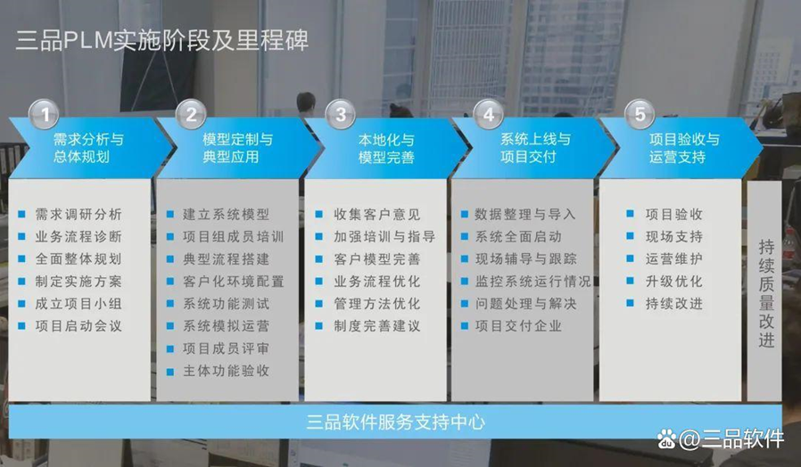 三品軟件在多年PDM/PLM實施服務的經驗基礎上,不斷地構思、改善, 積累了—套更加完整、更加快速、更加有效的實施方法。十多個不同的行業、數千家項目實施成功的事實證明了該方法的有效性。