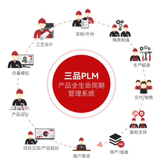 PLM系統不僅融合了技術要素,更是業務解決方案的綜合性集成。它支持協同地創建、使用、管理和分享與產品相關的智力資產,包括所有產品/工廠的定義信息,如MCAD、AEC、EDA、ALM分析、公式、規格參數、產品組、文檔等,還包括所有產品/工廠的流程定義,例如與規劃、設計、生產、運營、支持、報廢、再循環相關的流程。PLM支持企業間協作,跨越產品和工廠的全生命周期,從概念設計到生命周期終結。