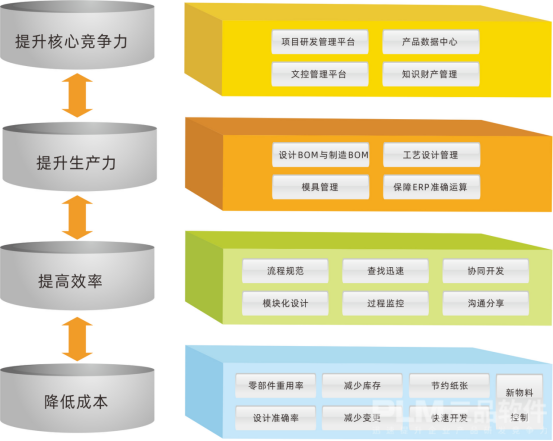 PLM系統價值:提供一個跨部門、跨地域的協同工作平臺。設計數據實時共享,工藝、采購、制造等下游部門可提前介入,進行可制造性、可采購性分析,實現真正的并行工程,大幅縮短產品開發周期。