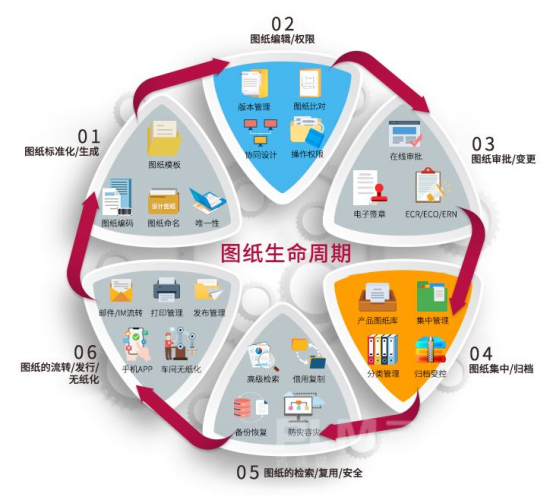 6.結構化流程引擎:可自定義的電子化工作流,覆蓋圖紙文檔的創建、審批、發布、變更(ECN/ECO)、歸檔等全生命周期流程,實現流程自動化與規范化。