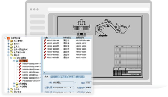 嵌入式菜單與雙向交互:系統(tǒng)在CAD軟件內(nèi)提供嵌入式在線菜單,設(shè)計師無需切換界面即可在CAD環(huán)境中查詢、檢索、編輯和管理PLM中的數(shù)據(jù),支持借用、裝配等復雜設(shè)計場景。
