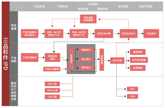 ○ 集成化環(huán)境:通過(guò)與主流EDA工具、MCAD工具以及ERP系統(tǒng)的深度集成,打破信息孤島,實(shí)現(xiàn)機(jī)電軟一體化設(shè)計(jì)。設(shè)計(jì)人員可以在PLM環(huán)境中直接啟動(dòng)和管理設(shè)計(jì)工具,相關(guān)設(shè)計(jì)輸出自動(dòng)提交至PLM并進(jìn)行關(guān)聯(lián)。