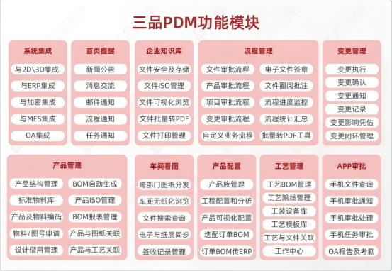 三、三品PDM系統的核心功能模塊