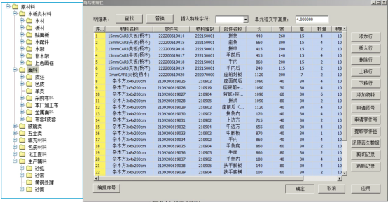 • 原料庫統一管控:搭建家具加工原料庫,分類管理木材、板材、五金、面料等物料屬性,通過CAD-PLM接口功能,實現零部件特征屬性精準匹配。