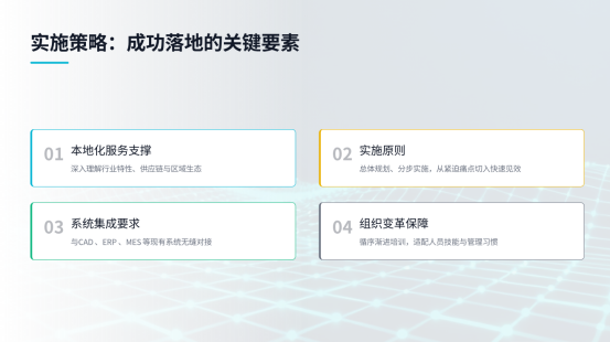 對于東莞裝備制造企業而言,PLM系統的成功實施不僅取決于產品功能,更離不開符合本地產業特點的服務支持。專業的實施團隊需要深入理解裝備行業的研發特點、供應鏈特性和區域產業生態。