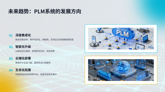 深度集成化。PLM系統將進一步與仿真分析、數字化孿生、物聯網平臺等技術融合,實現從產品設計、仿真驗證到生產制造、運維服務的全生命周期數據貫通。