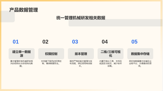 1.統(tǒng)一的產(chǎn)品數(shù)據(jù)管理(PDM)與電子倉庫:建立企業(yè)級(jí)單一數(shù)據(jù)源,集中管理所有機(jī)械研發(fā)相關(guān)的結(jié)構(gòu)化與非結(jié)構(gòu)化數(shù)據(jù)。支持基于角色的權(quán)限控制,確保數(shù)據(jù)安全。提供嚴(yán)格的版本管理與發(fā)布流程,保證所有環(huán)節(jié)使用唯一有效版本。內(nèi)置的二維/三維可視化工具支持在線輕量化瀏覽與批注,減少對(duì)原生設(shè)計(jì)軟件的依賴。
