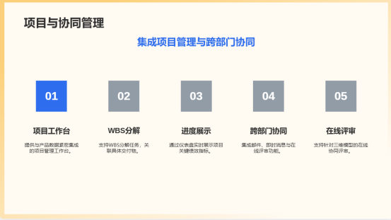 3.一體化項(xiàng)目與協(xié)同管理:提供與產(chǎn)品數(shù)據(jù)緊密集成的項(xiàng)目管理工作臺(tái)。支持WBS分解任務(wù),關(guān)聯(lián)具體交付物(如圖紙、文檔),實(shí)現(xiàn)任務(wù)進(jìn)度與數(shù)據(jù)狀態(tài)的聯(lián)動(dòng)更新。通過儀表盤實(shí)時(shí)展示項(xiàng)目關(guān)鍵績效指標(biāo),如里程碑達(dá)成率、任務(wù)完成率、資源利用率。集成郵件、即時(shí)消息與在線評(píng)審功能,構(gòu)建跨部門、跨地域的協(xié)同工作環(huán)境,支持針對(duì)三維模型的在線協(xié)同評(píng)審。