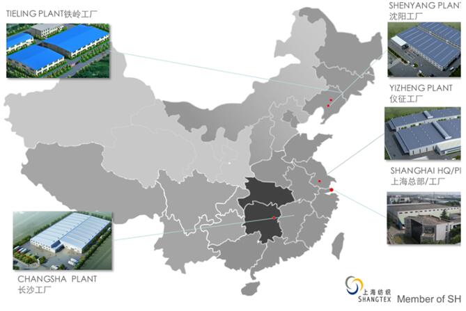上海汽車地毯總廠有限公司在中國(guó)擁有六個(gè)直屬工廠和7個(gè)合資公司.全國(guó)各地共18個(gè)工廠。